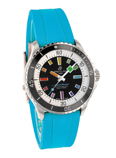 Die Funktionsuhren für moderne Taucher, legt Breitling jetzt auch mit einem Durchmesser von 42 mm auf. Diese Uhr besitzt ein widerstandsfähiges 42-Millimeter-Gehäuse aus Edelstahl. Sie ist bis 300 m wasserdicht. Durch die großen Leuchtindizes und Zeiger wird sichergestellt, dass auch in dunklen Tiefen, alles perfekt abgelesen werden kann.