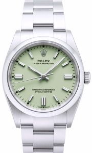 - Rolex Oyster Perpetual 36 in Pistaziengrün: kühle Eleganz mit moderner Frische.